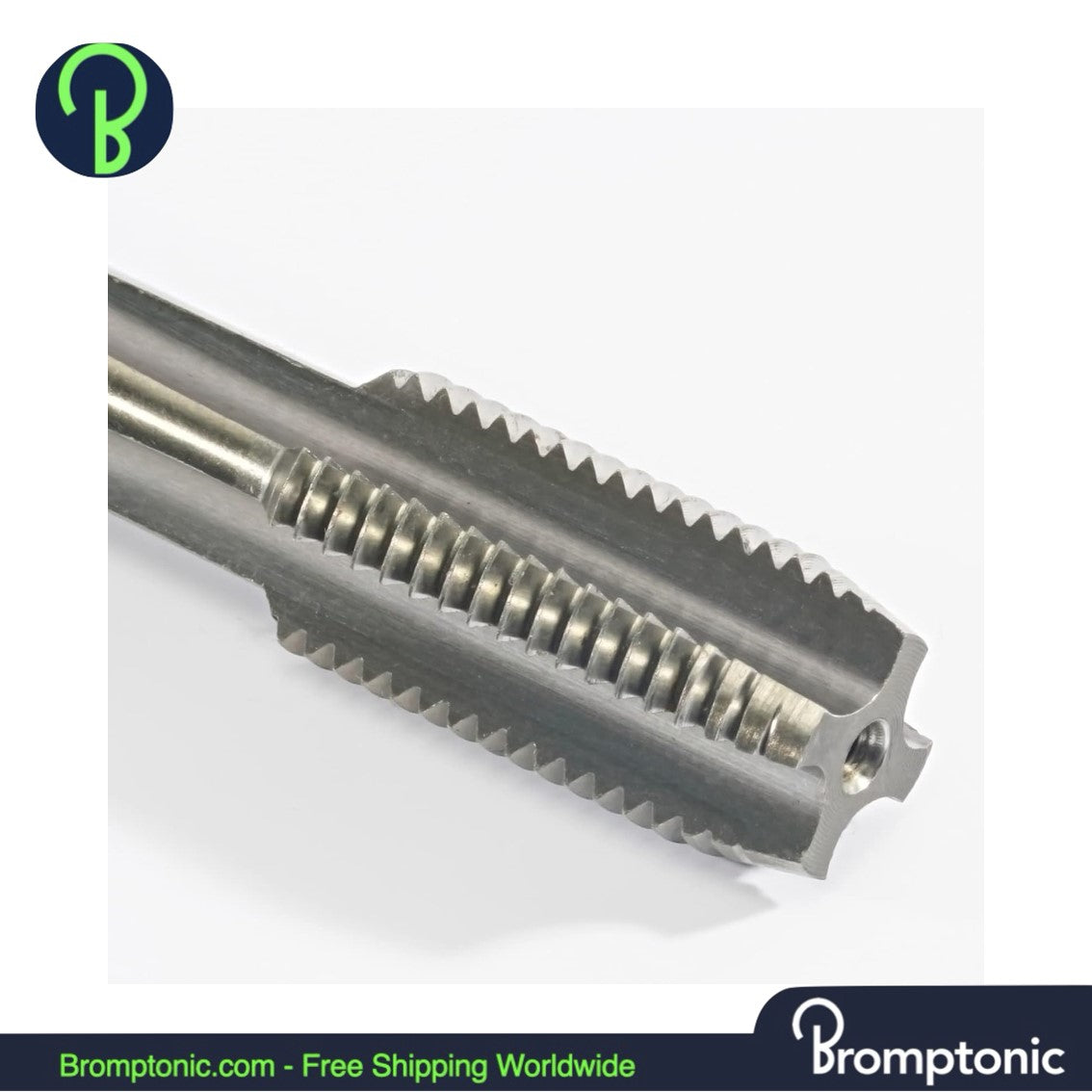 Ensure seamless repairs and maintenance with the Brompton Hinge Replacement Thread Tap & Die Set, designed to restore precision and functionality to your Brompton bike's hinge mechanism. Crafted from high-speed steel for durability and strength, this set includes both a UNF 7/16"-20 thread tap and a corresponding thread die, both configured for right-hand rotation.