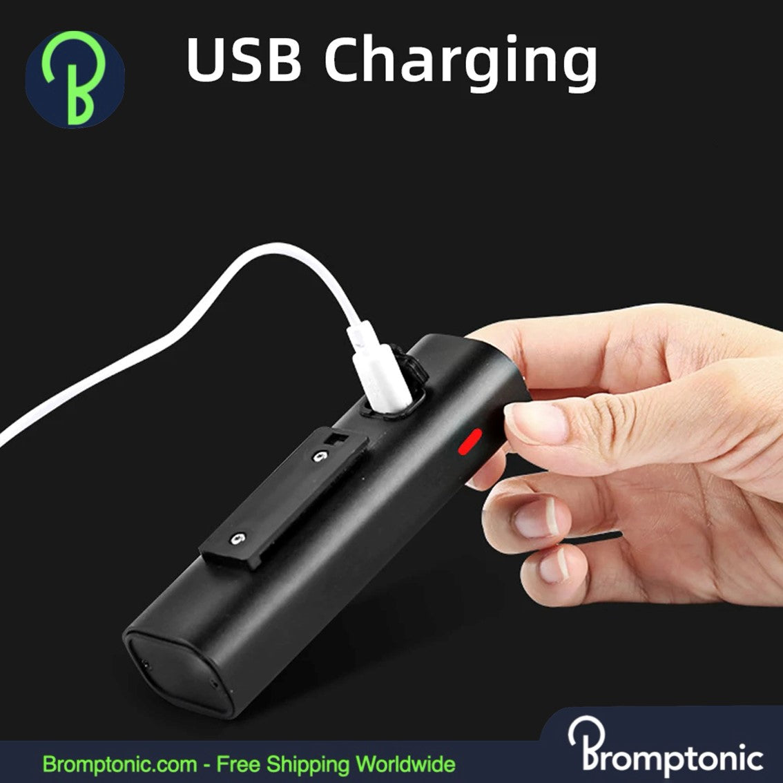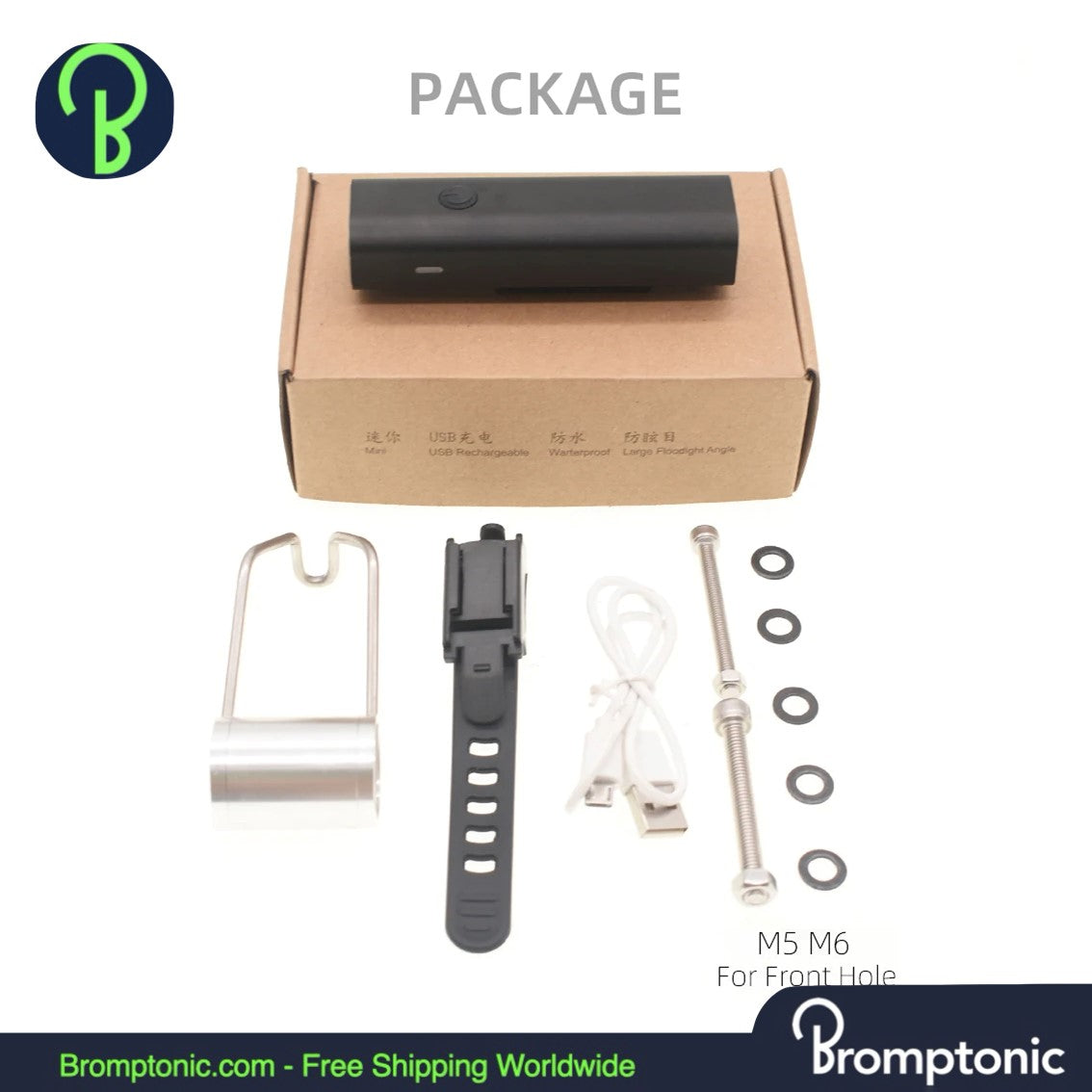 Upgrade your Brompton with this 400 Lumen Folding Bike Light, designed for optimal visibility and safety. Mounted on the front fork, it provides a clear, road-focused beam without blinding others. Built from durable aluminum alloy, it features USB charging, intelligent light sensing, and an adjustable rack angle for a perfect fit.