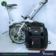 Say goodbye to all of your storage problems as this Brompton backpack is an innovation in portable storage. The bag is crafted from exquisite polyester and waterproof PVC; durability is this bag's forte; however, it's the main feat is the gigantic storage it boasts. To make things even better this bag was designed specifically for use with your Brompton bike, including a front-carrier strap that allows you to slide the bag directly onto your Brompton's front-rack.