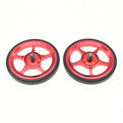 Built from anodized aluminum alloy and fitted with rubber-coated wheels, this upgrade handles bumps, curbs, and cracks far better than the original setup.
