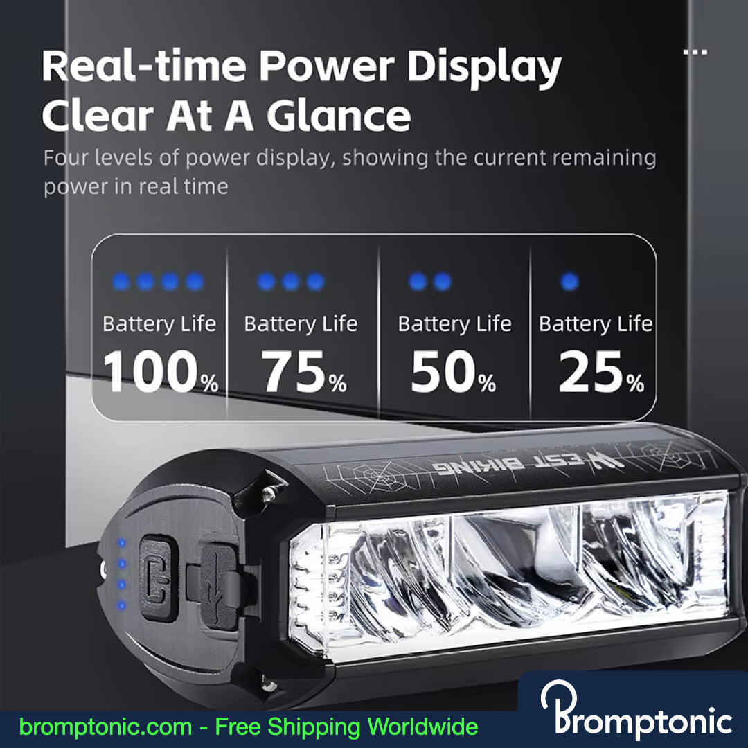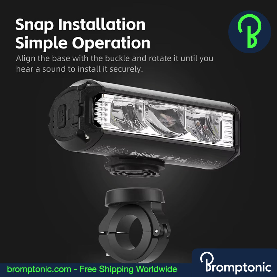 The Brompton 1750 Lumens Handlebar Bike Light is built for cyclists seeking powerful illumination and durability. With up to 1750 lumens, it ensures maximum visibility and safety, whether you're riding during the day or night. Designed for long-lasting use, it’s perfect for commuters, road cyclists, or those who love nighttime adventures.