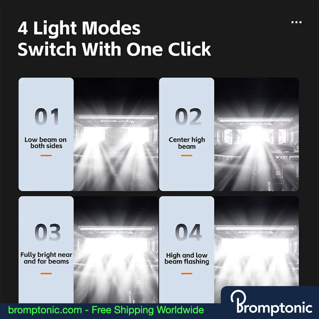 - Multiple Light Modes: Includes low beam, center high beam, full brightness, and flashing modes.