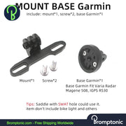 - Bevestigingsvoet Garmin: Bevat beugel en lichtvoet Garmin (compatibel met Varia Radar Magene 508, IGPS RS30).