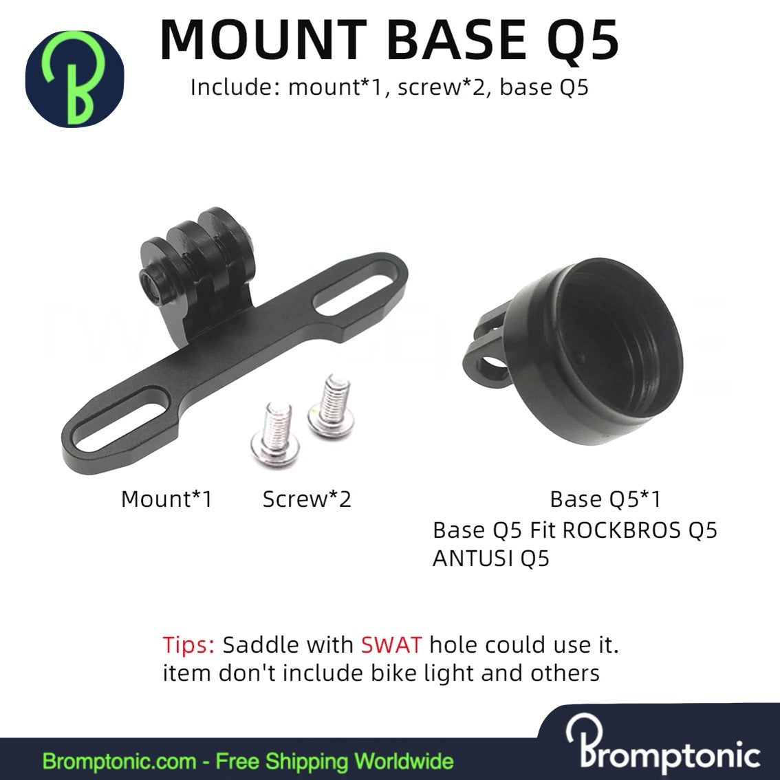 - Bevestigingsvoet Q5: Bevat beugel en lichtvoet Q5 (compatibel met ROCKBROS Q5, ANTUSI Q5).
